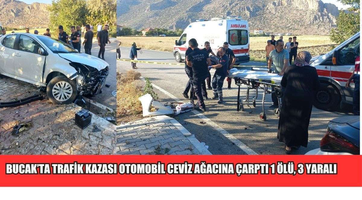BUCAK’TA TRAFİK KAZASI OTOMOBİL CEVİZ AĞACINA ÇARPTI 1 ÖLÜ, 3 YARALI