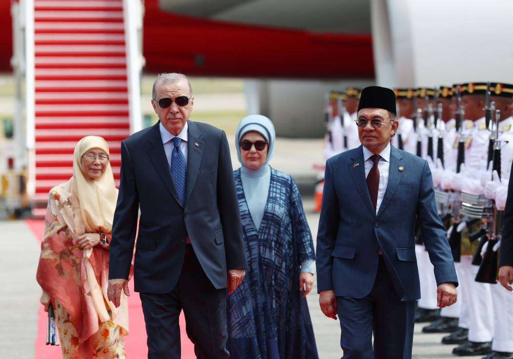 Cumhurbaşkanı Erdoğan'ı, Kuala Lumpur Uluslararası Havalimanı'nda, Malezya Başbakanı Enver İbrahim ve eşi Dr. Wan Azizah İsmail, Türkiye'nin Kuala Lumpur Büyükelçisi Emir Salim Yüksel, Malezya Savunma Bakanı Mohamed Khaled Nordin ile büyükelçilik personeli ve diğer yetkililer karşıladı.