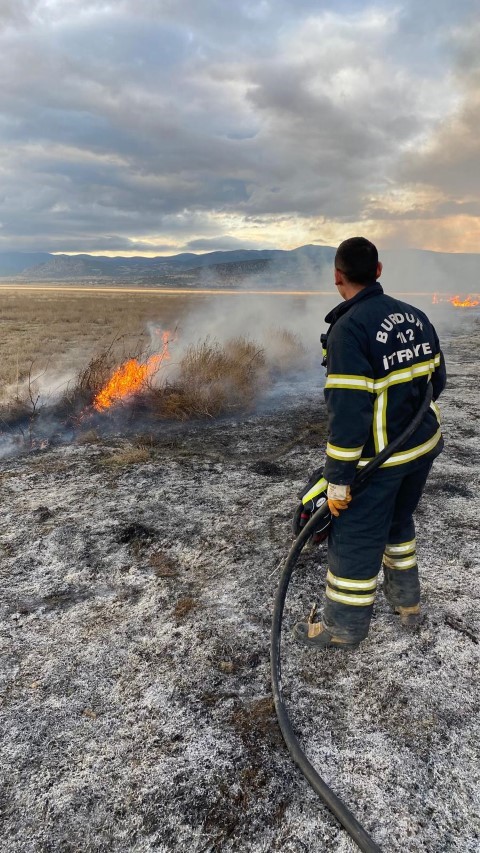 BURDUR'da çıkan yangında yaklaşık 150 dönüm kuru otluk arazi zarar gördü.