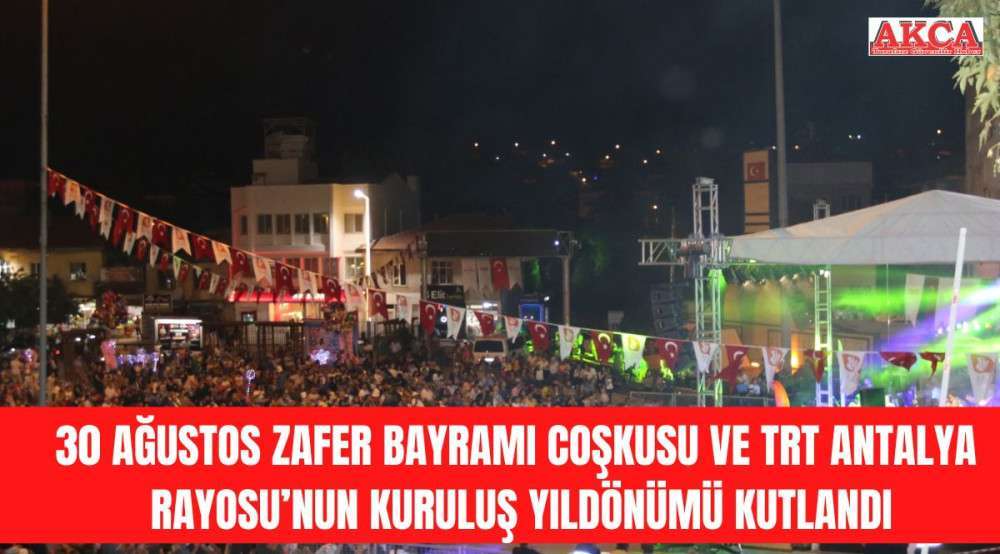 Saygı duruşu ve İstiklal Marşınınım okunması ile başlayan, Cumhuriyet Meydanında düzenlenen etkinliği Bucak Kaymakamı Erol Tanrıkulu, Belediye Başkanı Emrullah Ünal, Belediye Başkan Yardımcısı Oğuzhan Erdoğan, Ak Parti İlçe Başkanı Mustafa Oğuz, Belediye Meclis Üyeleri ve vatandaşlar katıldı. Bucak Belediyesi ile Antalya Radyosunun ortaklaşa düzenlediği 30 Ağustos Zafer Bayramı Coşkusu ve TRT Antalya Radyosu’nun 60’ncı yılı kutlamalarında Uğur Önür ve Umut Sülünoğlu’nun konseri ile coşkulu anlar yaşandı.