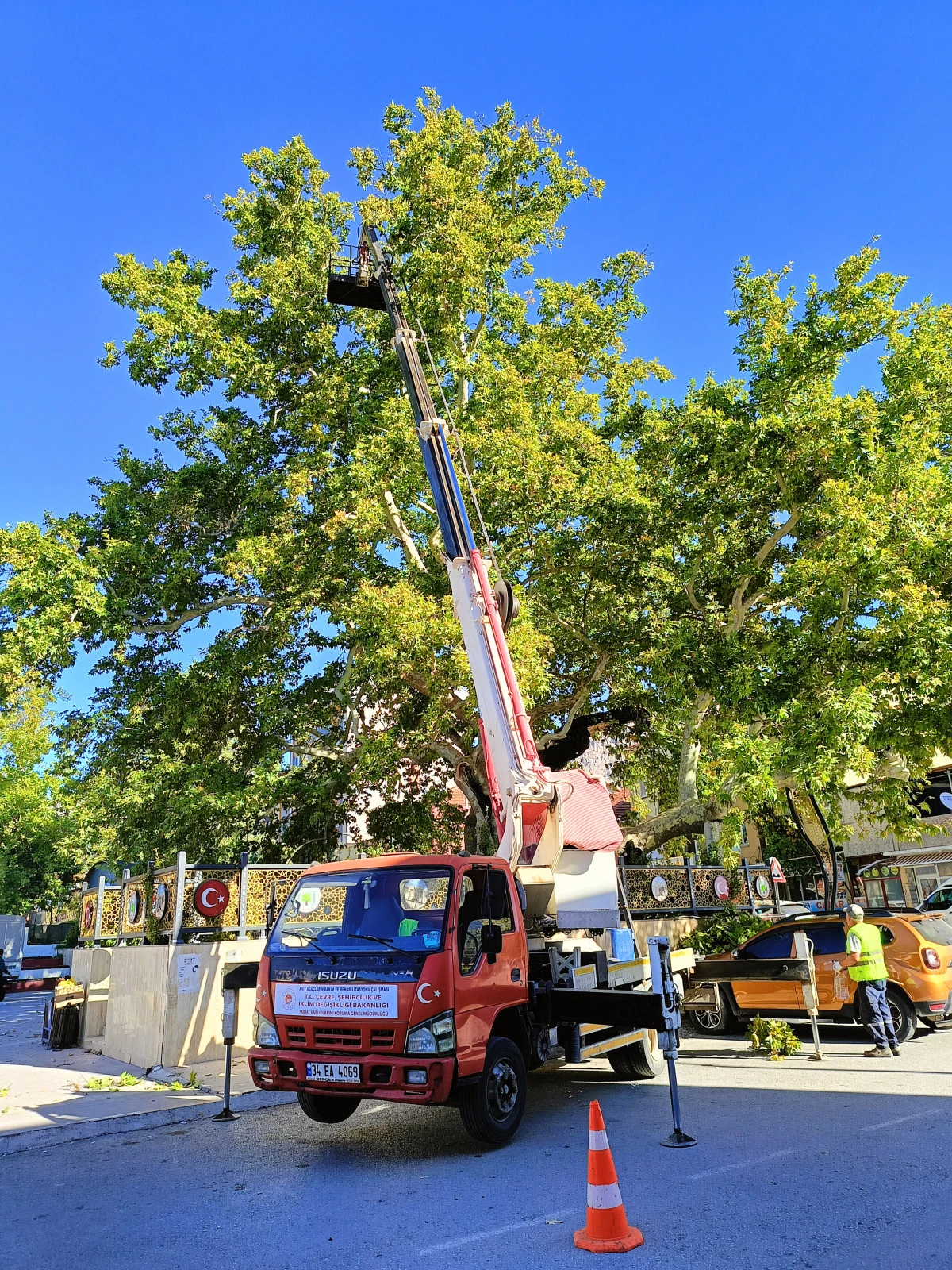 BURDUR'un Ağlasun ilçesinde bulunan 1206 yıllık 'anıt ağaç' olan Uluçınar ilk defa budandı.