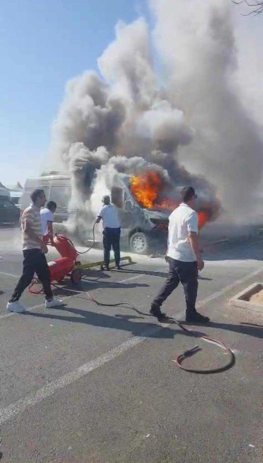 Tunahan KIR/ ANTALYA, (DHA)- ANTALYA Havalimanı T2 Terminal otoparkında park halindeki minibüste çıkan yangın paniğe neden oldu. Kısa sürede alevlerin sardığı araç, Havalimanı Kurtarma ve Yangınla Mücadele (ARFF) ekiplerinin müdahalesiyle söndürüldü.