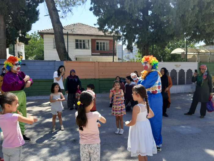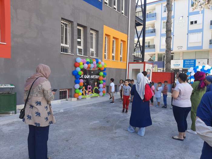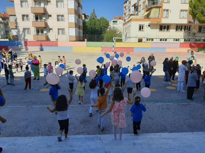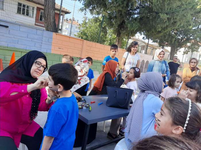 Okula uyum haftasının 2’nci gününde hazırlanan etkinlikte stantlarda balon etkinliği, oyun parkında eğlence etkinliği, yüz boyama etkinliği, danslı palyaço etkinliği, okulda ilk günün hatıra fotoğrafı etkinliği ve pamuk şeker etkinliklerinde anasınıfı ve birinci sınıf öğrencileri doyasıya eğelendiler.