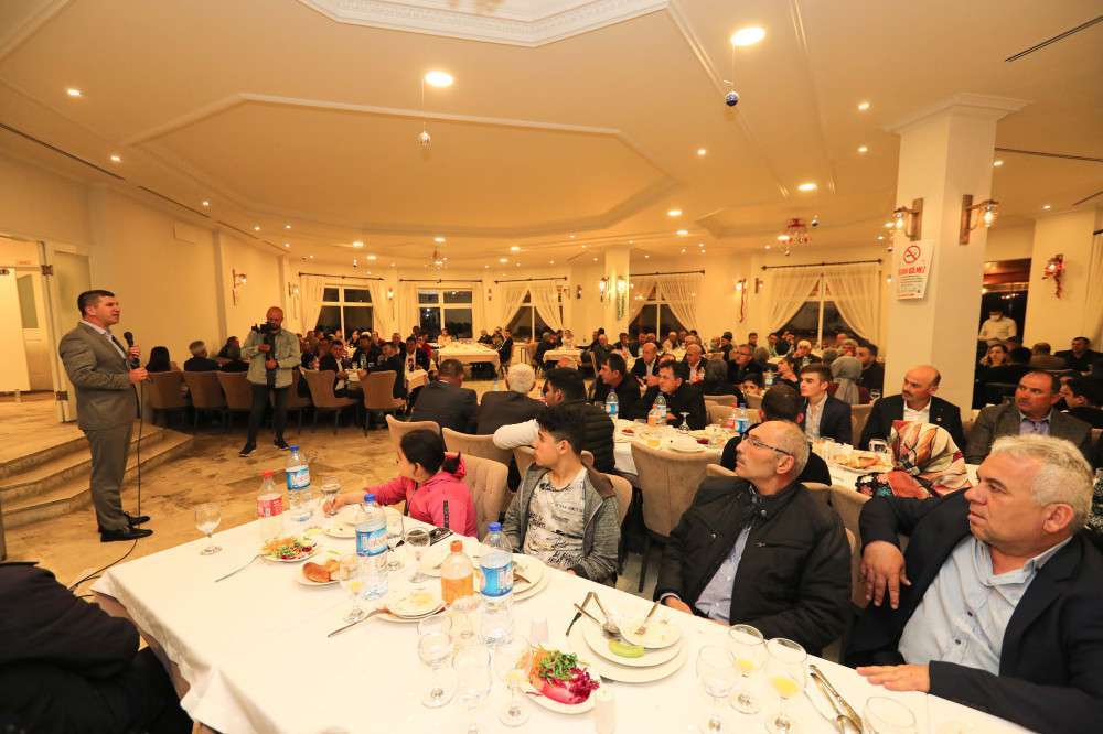 Yemekte konuşan Başkan Ercengiz “Öncelikle uzak yakın demeden her yıl olduğu gibi yine bizim davetimizi kırmadan davetimize icabet ettiğiniz için her birinize ayrı ayrı teşekkür ediyorum. Gönül ne kahve ister ne kahvehane gönül muhabbet ister gerisi bahane. Biz biraya gelmek için her fırsatı bir artıya çevirmeye çalışıyoruz. Bu mübarek ayda her yıl olduğu gibi geleneksel hale getirdiğimiz muhtarlarımızla yani sizlere beraber olduğumuz iftar yemeğimizde şükürler olsun yine beraberiz. Pandemi nedeniyle 2 yıldır buluşamamıştık. İklim koşulları biraz böyle bahar ve kışı anımsattığı için mahalle iftarlarımızı bu yıl yapamıyoruz. Bir diğer sebebi de şu bu yıl tüm gücümüzü Belediyenin tüm olanaklarını sosyal faaliyetler olarak ayırdığımız bütçeyi ihtiyaç sahibi yurttaşlarımıza kaynak haline dönüştürmeye karar verdik. Bu yıl ne iftar ne şenlik ne konser hiçbir etkinlik yapmayacağız. 23 Nisan hariç o gün çocukların bayramında bir etkinliğimiz var. Bunun dışında etkinliklere harcayacağımız tüm kaynakları gerçekten ekonomik olarak zorlanılan şu dönemde ihtiyaç sahibi yurttaşlarımıza bizzat sizlerin aracılığı ile ulaşmaya çalışıyoruz. Gönüllü bağışçılarımız çocuklarımızı sevindiriyor. Sevgili eşim Hülya sizlerin yanına geliyor sizlere güvenerek ve sizlerin işaret ettiği ihtiyaç sahibi yurttaşlarımızın çocuklarına da birer ayakkabı hediye ediyoruz. Bayrama yeni ayakkabı ile girmesini istediğimiz için. Değerli Muhtarlarım biz 8 yıldır sadece 35 mahallemizde değil 51 köy muhtarımız ile de gönül bağı kurmaya çalışıyoruz. İstekler sonsuz ama kaynaklar kısıtlı. Biliyorum seçildiğimiz günden bu yana vatandaşımız sabırsız vatandaşımızın beklentisi büyük ancak Ülkemiz 2018 yılından beri önemli bir ekonomik krizi de gün be gün iliklerine kadar hissediyor. Her bir akaryakıt zammı Burdur Belediyesinin hizmet hanesinde bir eksiye yol açmasın diye başka bir kaynağı azaltmaya çalışıyoruz. Arıtma tesisinin sorunun çözdük. Yeni bir Artıma Tesisini kazandırarak Burdur’un belki de 50 yıl ötesinde Arıtma ile ilgili sorunun çözmüş olacağız. Burdur Gölü’nün her geçen yıl kirlenen derişimi artan ve kuruyan Burdur Gölünün temiz kalabilmesi için önemli bir projenin sonucunu alacağız. Diğer taraftan İçme suyu ile ilgili önemli sorunları gidermeye çalışıyoruz. Göl geçişi projesini yeniden ayağa kaldırdık, projeleri bitti yapım için ihale aşamasına gelindiğinde inşallah bir terslik olmazsa senir kasabasındaki eski içme suyu kaynağımızı yeniden Burdur içme suyuna kazandıracağız. Ancak geçen yıl önemli bir su krizi yaşadık. İnsuyu havzası ve gökpınar havzamızda tabandaki su hızla çekildi. Kurak bir dönem geçirdik. Şükürler olsun yüce Mevla’m yüzümüze baktı bu sene bize kar ve yağmur verdi. Daha da versin isteriz. Sırf içme suyu havzamızı koruyalım diye sağolsun muhtarlarımız aracılığı ile havzamızda hem göl tabanından hem de içme suyu havzamızdan çekilen su kurumasın diye bin dönüm araziye ata tohumunu ektirdik. Bu tohumun alı garantisini de İzmir Büyükşehir Belediyesi ile protokole bağladık. İnşallah seneye bin dönüm değil on bin dönüm ekebilmek için önemli bir projeye imza atacağız. Türkiye 2021 yılı içerisinde 11 Milyon ton Buğday ithal etmiş. 330 Dolardan tonunu hesap ettiğinizde Milyarlarca liramızı biz ithal ettiğimiz yörelerin çiftçileri zengin ederek geçirdik. Biz kendi çiftçimizi kendi köylümüzün kendi hayvancımızın desteklenmesini istiyoruz. Bizler tüketici sizler üreticisiniz. Bugün Burdur’un nüfusu 5 bin artmış geçen yıla oranla sevindik mi ? Evet sevindik. 100 bin sınırına dayandık mı? Dayandık ancak ilimizin nüfusu artmamış. Bu şu anlama geliyor Köylerimizden hala kentimize göç var. Köyler üretim biterse yaşam biter. Bizlerde aç kalırız köylerimizde aç kalır. Köylümüzün, çiftçimizin ve hayvancımızın kısacası tüm üreticimizin desteklendiği projelerin derhal hayat geçirilmesi gerekiyor. Bugün eğer şekerin çuvalı 800 TL’ye çıktı ise bunun sorumlusu biz değiliz. Sorumlusu üretimin yetersizliğidir. Üretimi arttırmak zorundayız. Çiftçimizi köylümüzü ve hayvancımızı mutlaka desteklemek zorundayız. Karınca kararınca bir projeye imza attık. İnşallah bu proje bir devlet projesi olur. Yavaş yavaş Ayçiçeği ve Nohutta bunları göremeye başladık. Bunun yapılmasının sonuna kadar tarafıyım. Çünkü tüketici ne kadar çok bol bulabilirse o kadar o kadar ucuza satın alır. Üretici ne kadar çok üretebilirse ki Mazot ve gübre girdileri eğer bu seviyelerde kalırsa biraz zor gibi gözüküyor bunların düşünüldüğü takdirde köylümüzde çiftçimizde güler. Bizlerde güleriz. Ekonomimiz düzgün giderse bizlerde yerel yöneticiler olarak hizmetimizi daha verimli daha etkin ve daha etkin haliyle vatandaşımızı buluşturmaya çalışırız. Bu akşam burada olan tüm muhtarlarımıza değerli eşlerine siyasi partilerimizin değerli il ve ilçe başkanlarına, Belediye Meclisi ve İl Genel Meclis üyelerine teşekkür ediyorum.