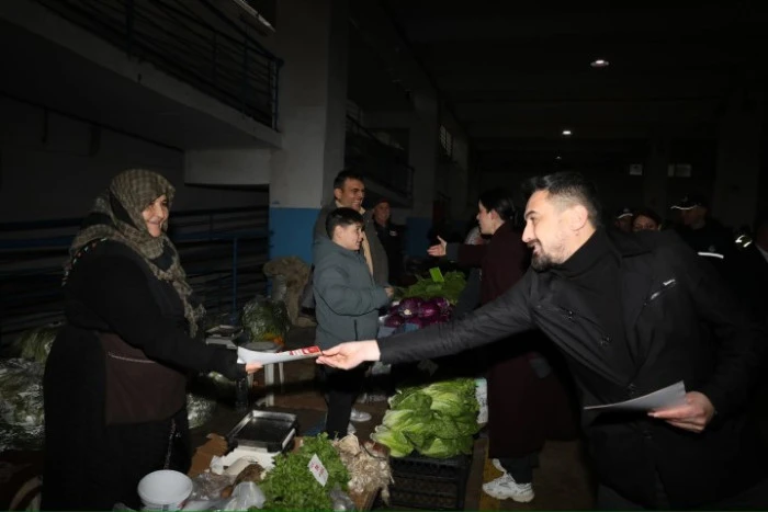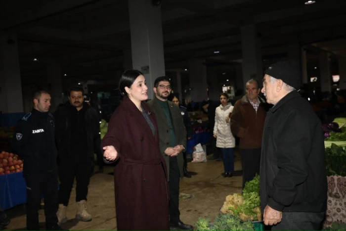 Pazar tezgahlarını tek tek gezen heyet, esnafın halini hatırını sorarak taleplerini yerinde dinledi. Vatandaşlarla samimi bir ortamda sohbet eden Başkan Gümüş, yerel yönetimin her zaman halkın içinde olmaya devam edeceğini vurguladı.
