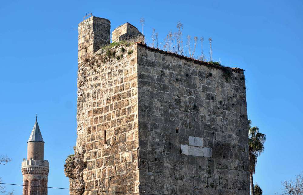 Semih ERSÖZLER/ANTALYA, (DHA)- ANTALYA'nın tarihi Kaleiçi semtini çevreleyen binlerce yıllık sur ve burçların üzerinde bakımsızlık nedeniyle bitkiler oluştu.