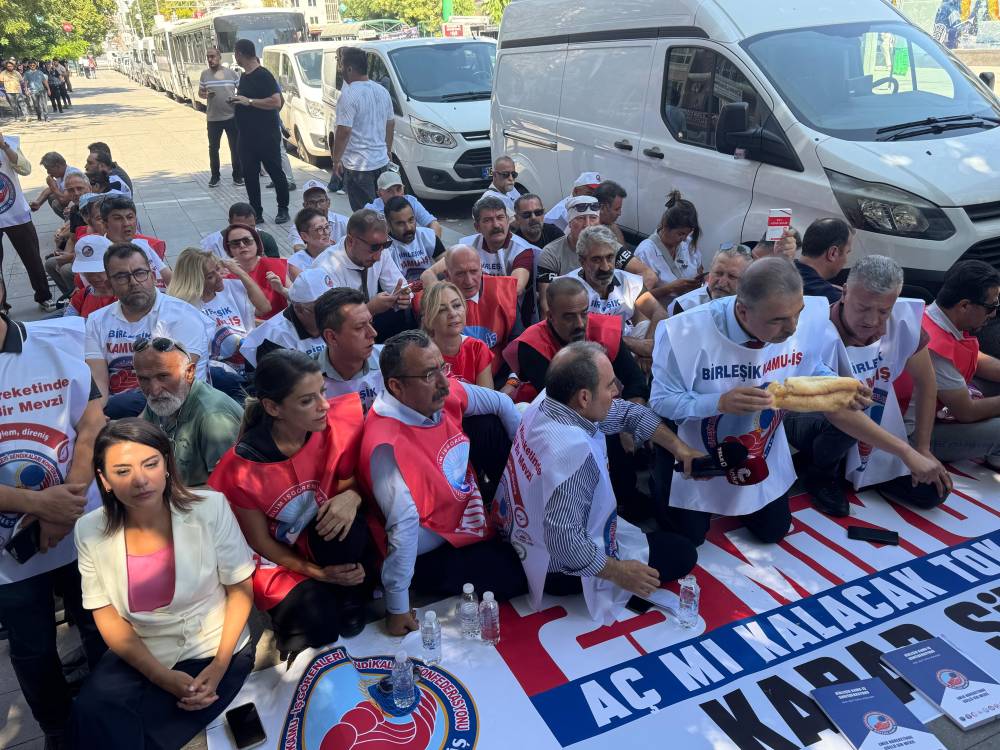 Birleşik Kamu-İş Konfederasyonu üyeleri, Toplu Sözleşme sürecine ilişkin taleplerini iletmek amacıyla konfederasyon genel merkezi önünde toplandı. Toplu sözleşmede uzlaşmaya varılamamasına tepki gösteren konfederasyon üyeleri, 1 saatlik oturma eylemi gerçekleştirdi. Konfederasyon Başkanı Orhan Yıldırım, daha sonra grup adına açıklamada bulundu. Yıldırım, '4188 sayılı Sendikalar Yasası'nın yetersiz olduğunu belirterek, memurlara grev hakkını vermeyen bir sendika yasasının kabul edilemez olduğunu söyledi. Yıldırım, "Biz hiçbir siyasi görüşe bağlı olmadan bunu konuşuyoruz. Biz bir daha söylüyoruz. Ekmeğimizin peşindeyiz. Bu ekmeği de kimsenin bizim elimizden alıp, kendi cebine aktarmasına müsaade etmeyeceğiz" diye konuştu. (DHA)