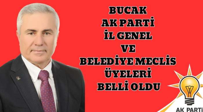 Bucak Belediye Başkanı Emrullah Ünal'ın adaylığının açıklanmasının ardından merak edilen il genel meclisi ve belediye meclis üyeleri şöyle,   AK PARTİ BUCAK İL GENEL MECLİSİ ÜYE ADAYLARI 1 İBRAHİM AVCIL - BUCAK - LİSE - EMEKLİ   2 MEHMET ŞENCAN - BUCAK - LİSE - EMEKLİ   3 SÜLEYMAN YAVUZHAN UYANIK - BUCAK - LİSANS - EMEKLİ   4 MEHMET ÖZKAN - ÜRKÜTLÜ - LİSE - EMEKLİ   YEDEK 1 AYŞE ORAL - BUCAK - LİSANS - EMEKLİ   AK PARTİ BUCAK BELEDİYE MECLİS ÜYESİ ADAYLARI 1 AYŞEGÜL ALTUNSOY ISPARTA - LİSANS - SERBEST MUHASEBECİ MALİ MÜŞAVİR   2 YUNUS KARACAN - BUCAK - LİSE - ESNAF   3 AHMET GEZMEZ - BUCAK - ORTAOKUL - EMEKLİ   4 İSMAİL BAŞARIR - BUCAK - LİSANS - İŞ İNSANI   5 BÜNYAMİN KIZIL - BUCAK - LİSANS - İŞ İNSANI   6 EMRA AKÇAY BİLGİÇ - BUCAK - ÖNLİSANS - İŞ İNSANI   7 MEHMET ATAŞ - BUCAK - LİSANS - İŞ İNSANI   8 ABDÜLKADİR ÇALIŞKAN - BUCAK - LİSE - ESNAF   9 ALİ KAYNAK - BUCAK - LİSANS - İŞ İNSANI   10 ALİ GÜN - BUCAK - LİSANS - İŞ İNSANI   11 ÖMER KORKMAZ - BUCAK - LİSANS - EMEKLİ   12 AYŞE GÜLER AY - BUCAK - LİSE - ESNAF   13 EMRULLAH DİKİCİ - BUCAK - ÖNLİSANS - ÇALIŞAN   AK PARTİ BUCAK BELEDİYE MECLİS ÜYESİ YEDEK ADAYLARI 1 HASAN DEMİR - BUCAK - LİSE - ESNAF   2 ALİ BESDİLLİ - BUCAK - İLKOKUL - ESNAF   3 İBRAHİM YİĞİT - BUCAK - İLKOKUL - ESNAF   4 AHMET DURKUT - BUCAK - LİSANS - ÇALIŞAN   5 MÜZEYYEN DUMAN - BUCAK - ÖNLİSANS - EMEKLİ