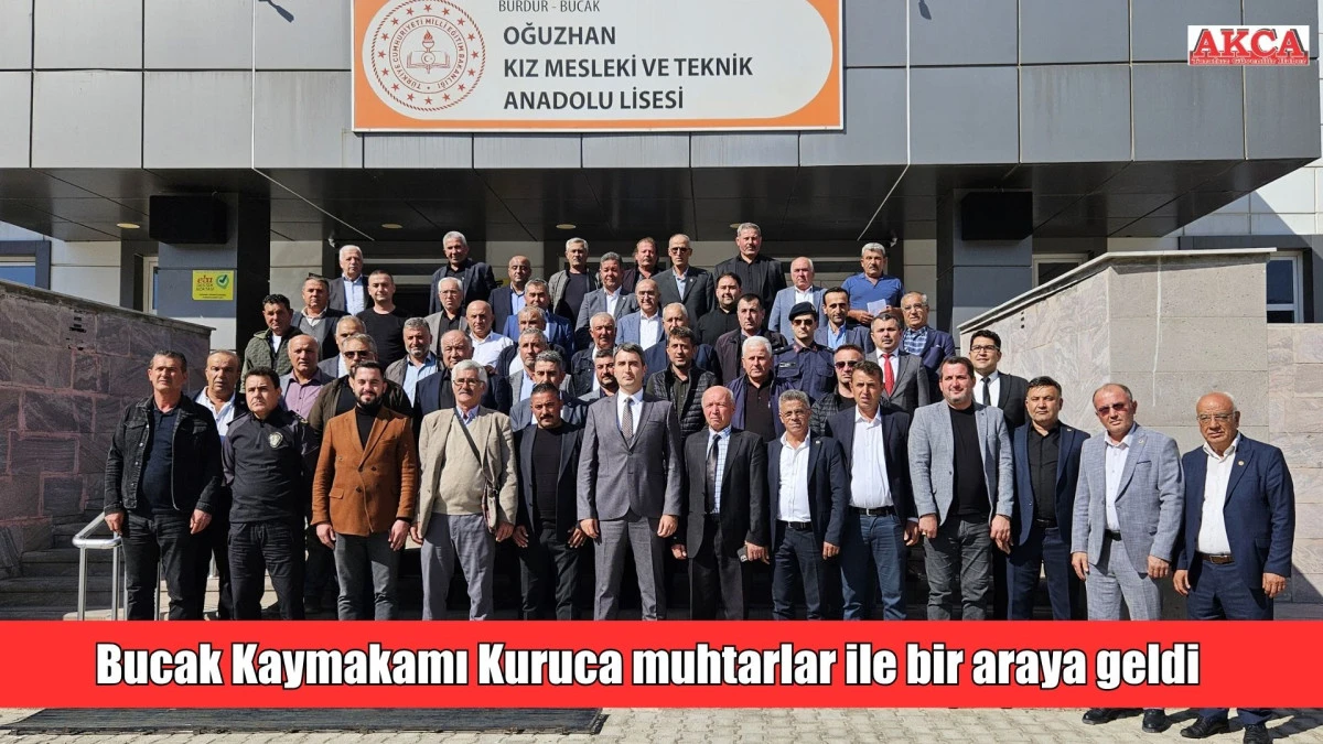 Bucak Kaymakamı Can Kazım Kuruca, 19 Ekim Muhtarlar Günü dolayısıyla mahalle ve köy muhtarlarıyla bir araya geldi. Bucak Oğuzhan Kız Mesleki ve Teknik Anadolu Lisesi toplantı salonunda düzenlenen programa Bucak Emniyet Müdürü Nail Çelik, İlçe Jandarma Komutanı Üsteğmen Alperen Çatlı, İlçe Milli Eğitim Müdürü Bekir Canavar, İl Genel Meclisi üyeleri ve köy muhtarları Köylere Hizmet Götürme birliği 2025 Yılı 2. olağan meclis toplantısı gerçekleşti. Toplantının ardından protokol üyeleri ile muhtarlar öğle yemeğinde buluştu.