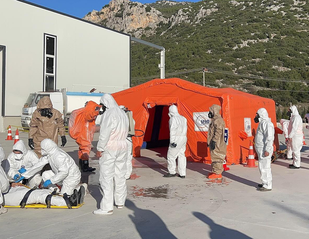 BURDUR’ un Bucak ilçesinde, Türkiye Afet Müdahale Planı (TAMP) kapsamında Bucak Organize Sanayi Bölgesi’nde (OSB) geniş çaplı bir acil durum tatbikatı gerçekleştirildi. Senaryo gereği olası bir yangın ve Kimyasal, Biyolojik, Radyolojik ve Nükleer (KBRN) tehlikelere karşı yapılan tatbikata çok sayıda kurum etkin şekilde katılım sağladı.
