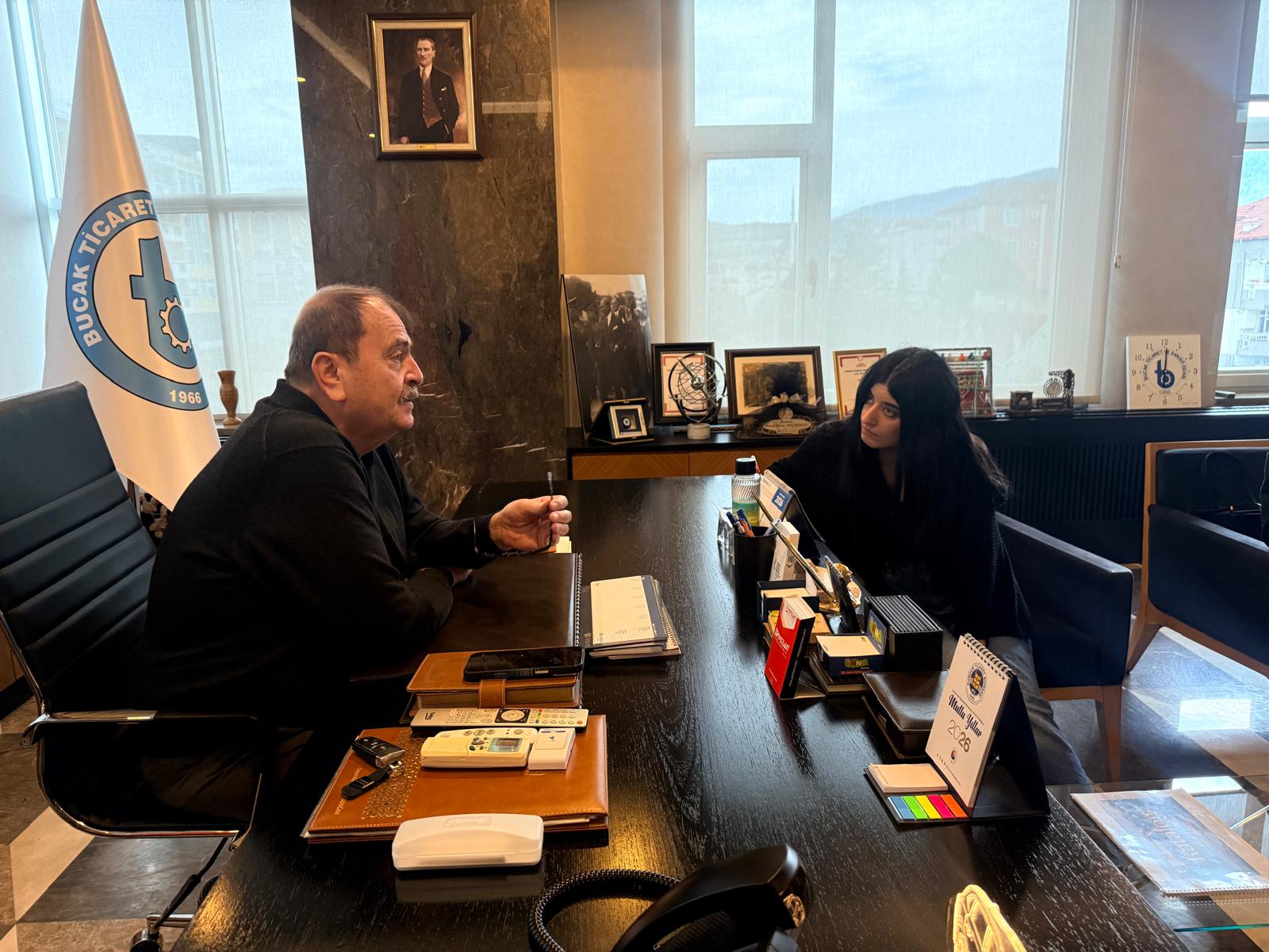 "Topluma Hizmet Uygulamaları" dersi kapsamında gerçekleşen ziyarette, Acil Yardım ve Afet Yönetimi Bölümü öğrencileri Sümeyye Denizedalan, Berivan Kaya ve Bereket Ali Tatlı, Bucak TSO'yu ziyaret etti. Kurumun görev alanları, yürütülen projeler ve iş dünyasına sağlanan hizmetler hakkında detaylı bilgi alan öğrenciler, kurumun günlük işleyişini yerinde gözlemleme fırsatı buldu.