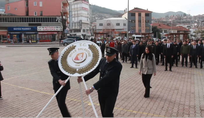 Cumhuriyet Meydanı'nda yapılan törende, Kaymakam Can Kazım Kuruca, Garnizon Komutanı Özgürer Türkmenel ve Belediye Başkanı Hülya Gümüş, Atatürk Anıtı'na çelenk sundu. Saygı duruşu ve İstiklal Marşı'nın ardından programa katılanlar, Çavuşlar ve Hacı Sarılar Mezarlığındandık şehit mezarlarını ve Hacısarılar Mezarlığı'ndaki şehitliği ziyaret etti. Şehitlikte Kaymakam Can Kazım Kuruca, Belediye Başkanı Hülya Gümüş ve diğer protokol üyeleri şehit mezarlarına çiçek bırakarak dua etti. Bucak Müftülüğü görevlileri tarafından Kur'an-ı Kerim okunmasının ardından dualar edildi.