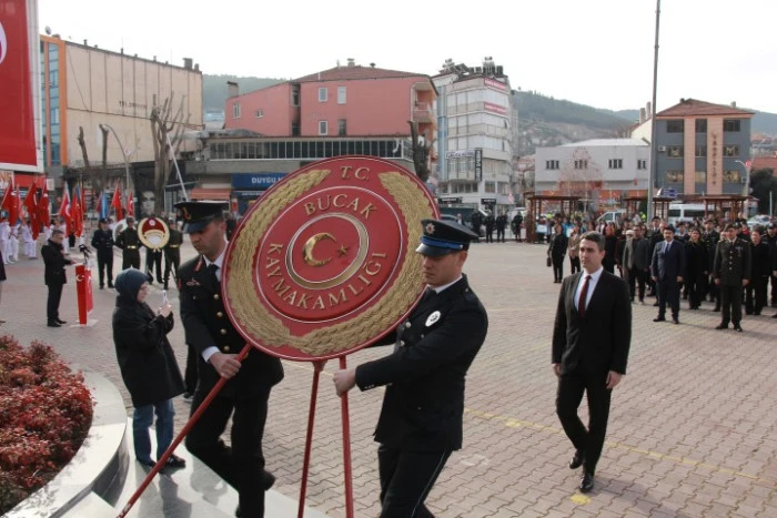 Bucak'taki 18 Mart törenine Kaymakam Can Kazım Kuruca, Belediye Başkanı Hülya Gümüş, Garnizon Komutanı Yarbay Özgürer Türkmenel, Bucak Cumhuriyet Başsavcı vekili Yusuf Güler, bazı resmi kurumların amir ve müdürleri, siyasi parti temsilcileri, sivil toplum örgütü temsilcileri, oda ve dernek başkanları ile vatandaşlar katıldı.