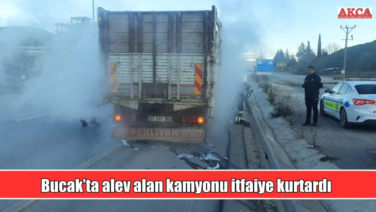 Olay, bugün saat 08.00 sıralarında Yetmişevler Mahallesi Alparslan Türkeş Bulvarı üzerinde meydana geldi. Edinilen bilgilere göre, sürücüsü henüz belirlenemeyen 07 AYP 966 plakalı kamyonun arka balatalarından yükselen dumanlar kısa sürede yerini alevlere bıraktı. Lastiklerin yanmaya başladığını fark eden çevredeki vatandaşların ihbarı üzerine bölgeye Bucak Belediyesi İtfaiye ekipleri ve polis sevk edildi. Olay yerine kısa sürede ulaşan itfaiye ekipleri, alevlere müdahale ederek yangını kamyonun kasasına ve yakıt deposuna sıçramadan kontrol altına aldı. Yangın sonucunda kamyon tamamen yanmaktan kurtarılırken, aracın arka lastiklerinde maddi hasar meydana geldi. Polis ekipleri olayla ilgili inceleme başlattı.