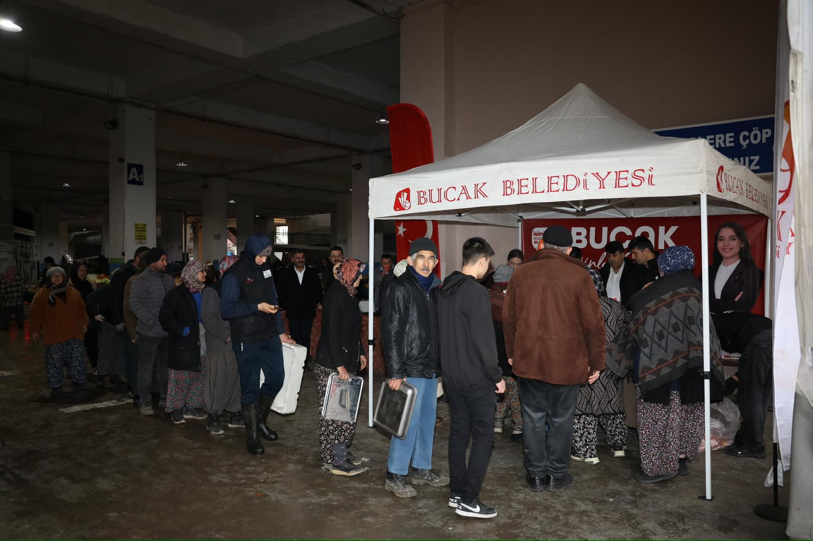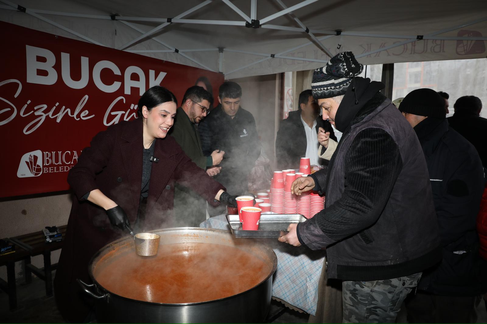 Çorba dağıtımına bizzat katılan Bucak Belediye Başkanı Hülya Gümüş, beraberinde Cumhuriyet Halk Partisi (CHP) İlçe Başkanı Ahmet Sedat Oktay ile birlikte kazanların başına geçerek vatandaşlara servis yaptı. Soğuk havaya rağmen yoğun ilginin olduğu etkinlikte, pazarın dört bir yanına sıcak çorba kokusu yayıldı.