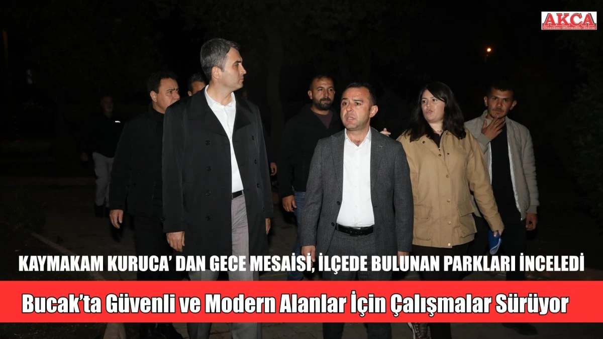 Bucak Kaymakamı Can Kazım Kuruca, Belediye Başkan Yardımcısı Hüseyin Göktur ve İlçe Emniyet Müdürü Nail Çelik ile birlikte ilçedeki park alanlarında incelemelerde bulundu.