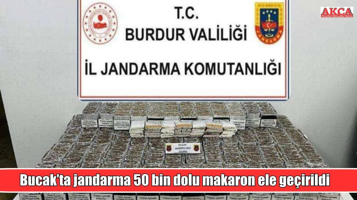 Burdur Jandarma Komutanlığına bağlı ekipler ve  Bucak Cumhuriyet Başsavcılığı koordinesinde Bucak ilçesinde gerçekleştirilen operasyonlarda H.H.Ç. ve B.A. isimli iki şüpheli gözaltına alındı. Şüpheliler, jandarmadaki işlemlerinin ardından haklarında yapılan adli işlemler sonrasında serbest bırakıldı. Operasyon kapsamında yapılan aramalarda 50 bin 40 adet dolu makaron ele geçirilerek muhafaza altına alındı.