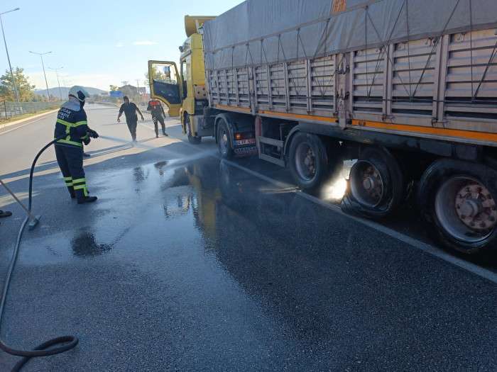 Bu gün saat 16:00 sıralarında Antalya – Burdur karayolu Bucak ilçesi Mimar Sinan Mahallesinde, Burdur’dan Antalya istikametine giden Recep Ç. İdaresindeki 64 FF 528 plakalı tır dorse lastiğinin patlaması soncu yanmaya başladı. İhbar üzerine olay yerine Bucak Belediyesi İtfaiye ve kurtarma ekipleri sevk edildi. Lastik patlaması soncu dorse lastiklerinden yanmaya başlayan tıra Bucak Belediyesi İtfaiye ekiplerinin erken müdahalesi ile yangın kısa sürede söndürüldü.