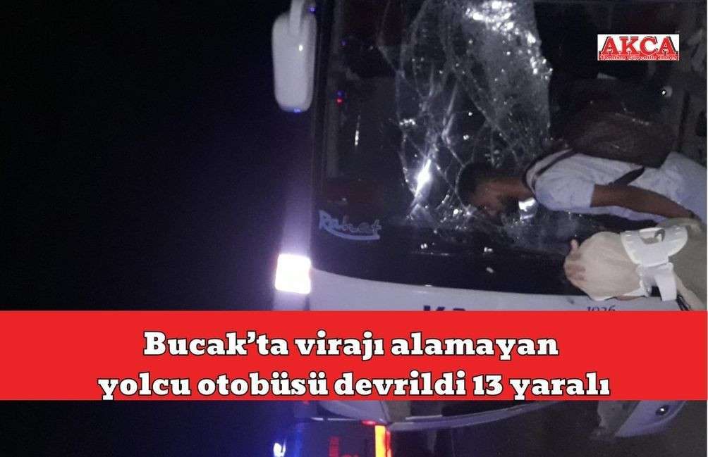 BURDUR’ un Bucak ilçesinde Antalya – Isparta karayolunda virajı alamayan otobüs devrildi 13 kişi yaralandı.