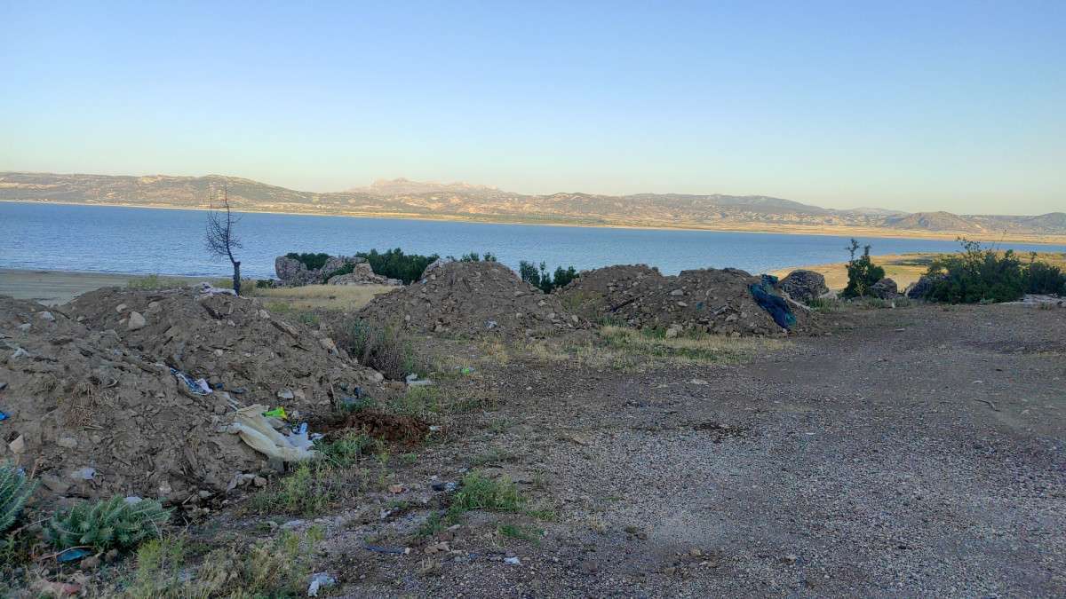 BURDUR Gölü kenarına kimliği belirsiz kişi veya kişiler tarafından hafriyat ve atık döküldü.