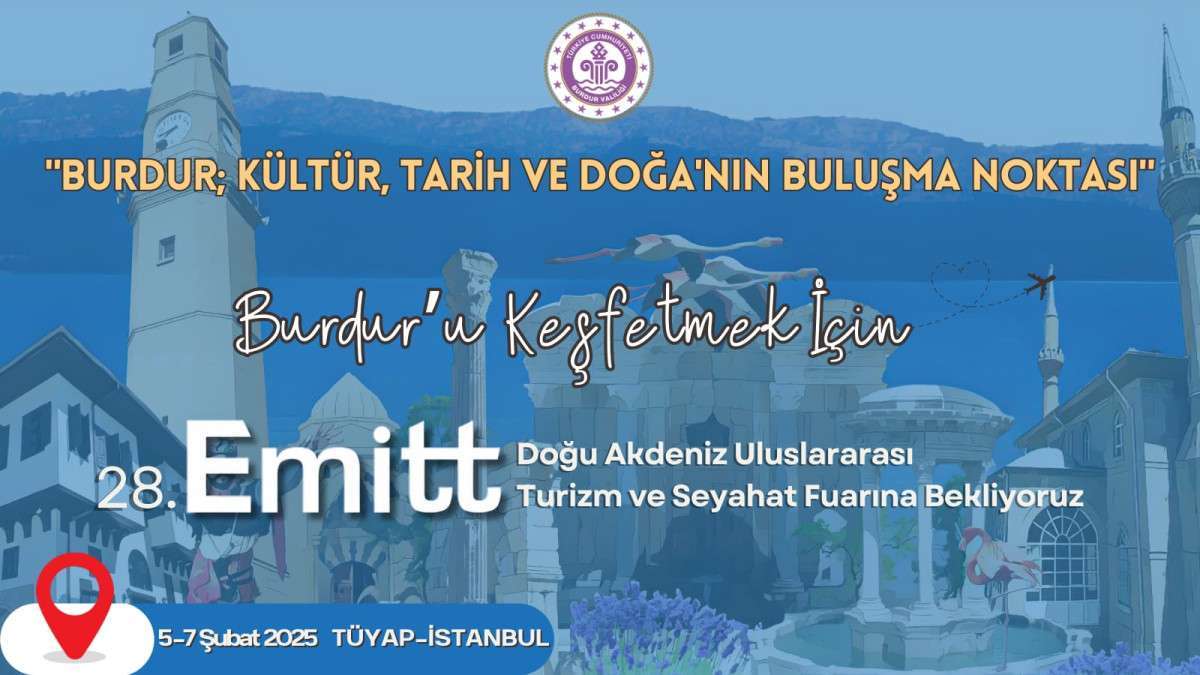 Dünyanın en büyük turizm fuarları arasında yer alan 28. EMITT’te, Burdur’un kültürel, tarihi ve doğal güzelliklerinin tanıtımı yapılarak, İlimizin Turizm potansiyeli turizm sektörünün tüm ulusal ve uluslararası paydaşları ve sektör profesyonelleriyle paylaşılacak.