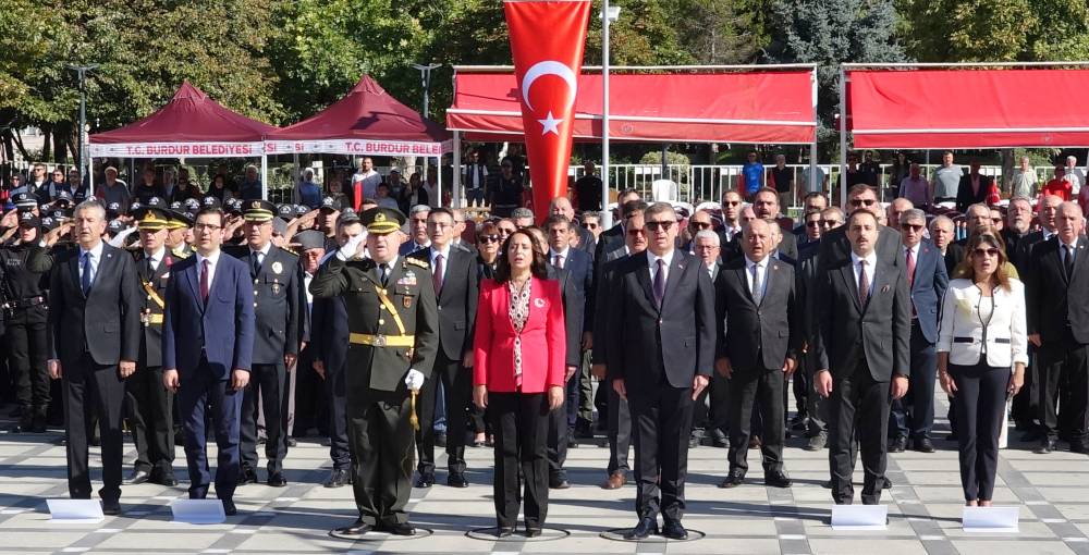 Cumhuriyet Meydanı'nda düzenlenen törende Vali Tülay Baydar Bilgihan, Garnizon Komutanı Albay Metin Çelebi, Belediye Başkanı Ali Orkun Ercengiz tarafından Atatürk Anıtı'na çelenk sunuldu, ardından saygı duruşunda bulunuldu. Törene katılanlar İstiklal Marşı okudu. Törende Adalet Komisyonu Başkanı Musa Talih, Mehmet Akif Ersoy Üniversitesi Rektör Vekili Prof. Dr. Hakan Öner, Baro Başkanı Meltem Özdemir, İl Jandarma Komutanı Albay Mehmet Balcı, İl Emniyet Müdürü Ahmet Kurt ile askerler, siyasi parti temsilcileri, sivil toplum kuruluşu temsilcileri, kamu kurum ve kuruluşlarının idarecileri ile vatandaşlar da yer aldı.