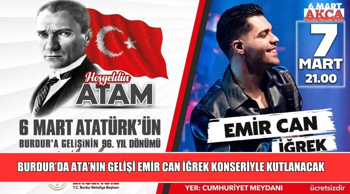 Belediye tarafından yapılan açıklamada, tüm halkın bu tarihi gurura davetli olduğu belirtilerek şu detaylar paylaşıldı: "Ulu Önderimiz Mustafa Kemal Atatürk’ün Burdur’a gelişinin 96. yıl dönümünde büyük bir coşkuyla bir araya geliyoruz. 7 Mart Cuma günü saat 21.00’de Cumhuriyet Meydanı’nda düzenlenecek Emir Can İğrek konserine tüm halkımızı bu büyük heyecanı hep birlikte yaşamaya davet ediyoruz."