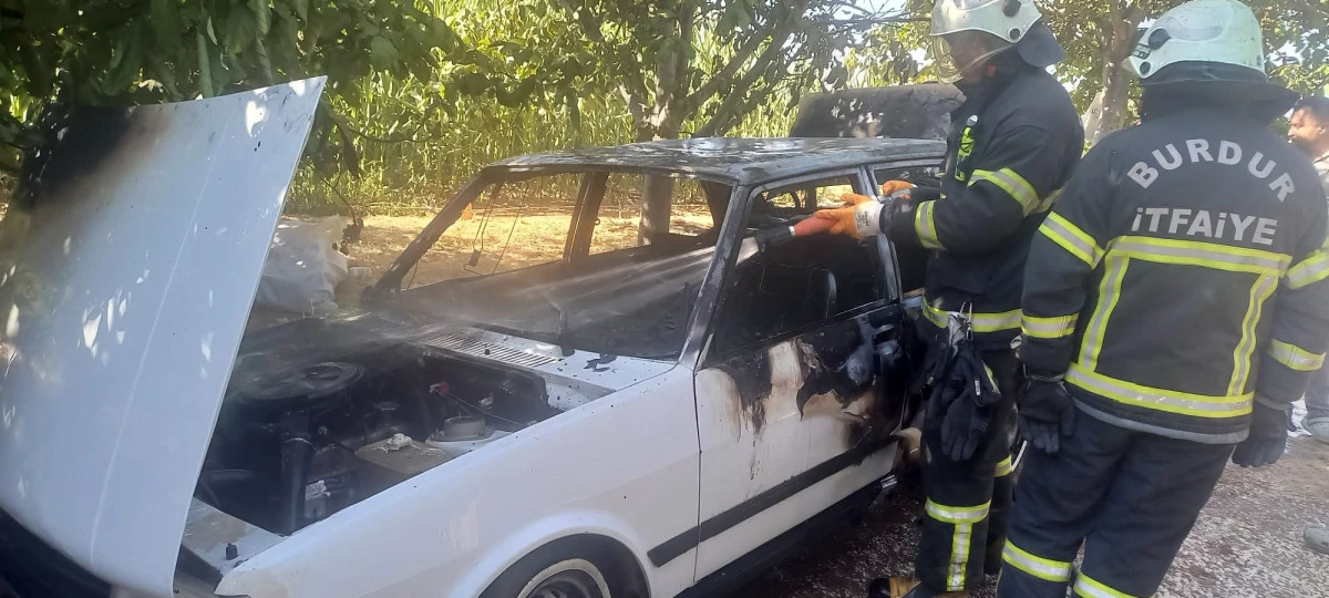 -BURDUR'un Çatağıl Köyü'nde seyir halindeki otomobil yanarak kullanılamaz hale geldi.