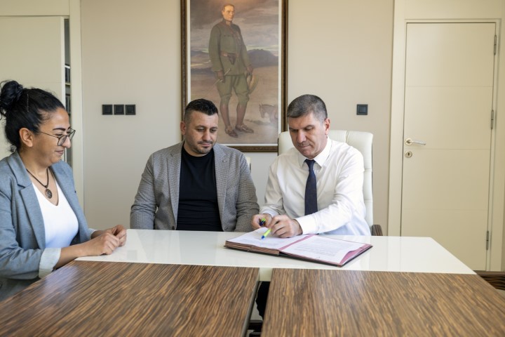 BURDUR Belediye Başkanı Ali Orkun Ercengiz ile iş insanı Ömer Kıymaz, Şirinevler Mahallesi’nde inşa edilecek yeni kreşin yapım süreci ve yer teslimi için başkanlık makamında protokol imzaladı.