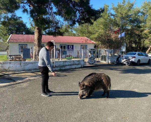 MUĞLA'nın Bodrum ilçesinde, geçen yıl yaralı olarak bulunan ve tedavisinin ardından doğal yaşamına bırakılan 'Ceyar' adı verilen yaban domuzu, tedavi gördüğü bakımevinden kopamıyor. Her gün geldiği bakımevinde, belediye personeli tarafından beslenen Ceyar, tekrar ormana dönüyor.