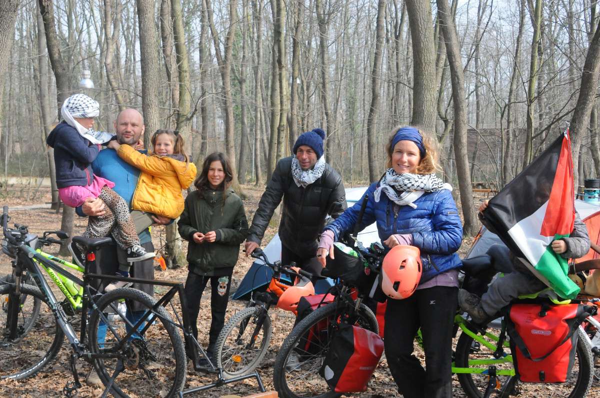 Fransa'nın Le Grande Chez Elle kentinde yaşayan Filistinli Yousef Najmeddin ve Fransız Matilde Najmeddin (40) çifti, çocukları Noon (12), Jood (9), Ninawa (6) ve Jal'ın (4), babalarının kültürü ve köklerini daha yakından tanımaları için 2021 Eylül'de Filistin'e gitmek üzere yola çıktı. Fransa'dan eşek arabalarıyla başlayan ve yaklaşık 2 yıl süren yolculukla Bulgaristan'a gelen aile, Türkiye sınırındaki Stoilovo kentinde Amedeo Giacomini (38) ile tanıştı. İsrail'in Filistin'e yönelik saldırıları başlattığı 7 Ekim 2023'de Bulgaristan'da olan aile, çocuklarının orada yaşanan zulmü daha iyi anlaması ve ellerinden geldiği kadar Filistin'e destek olmak için yolculuklarına devam etme kararı aldı. Türkiye'nin çok büyük bir ülke olması sebebiyle yollarına eşek arabası yerine bisikletle devam etmeye karar veren aile, Bulgaristan'dan aldıkları bisikletlerle Türkiye'ye giriş yaptı. İstanbul'da bir süre vakit geçirdikten sonra yeniden yola koyulan aile, konaklamak için Kocaeli'nin Kartepe ilçesindeki Ormanya Doğal Yaşam Parkı'nda mola verdi. Pazartesi sabahı yola çıkacak aile, Irak ve Ürdün'ü geçip Filistin'e ulaşmayı planlıyor.