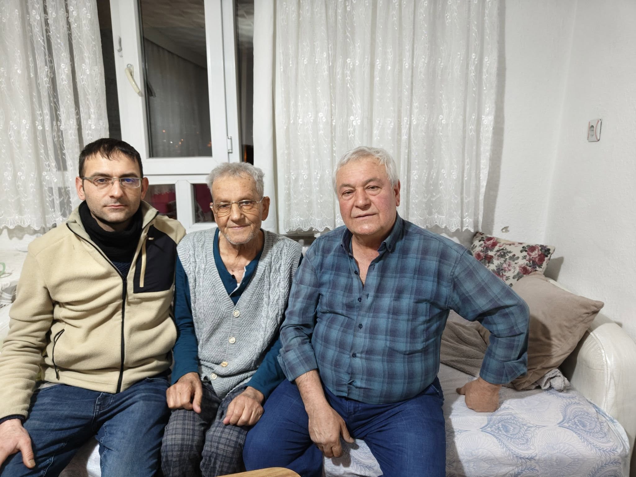 Çekilen son fotoğraf anılarda kaldı. Sağ tarfta Mustafa. ortada vefat eden Adem ve solda gazetci ve matbaacı Salih Tutum