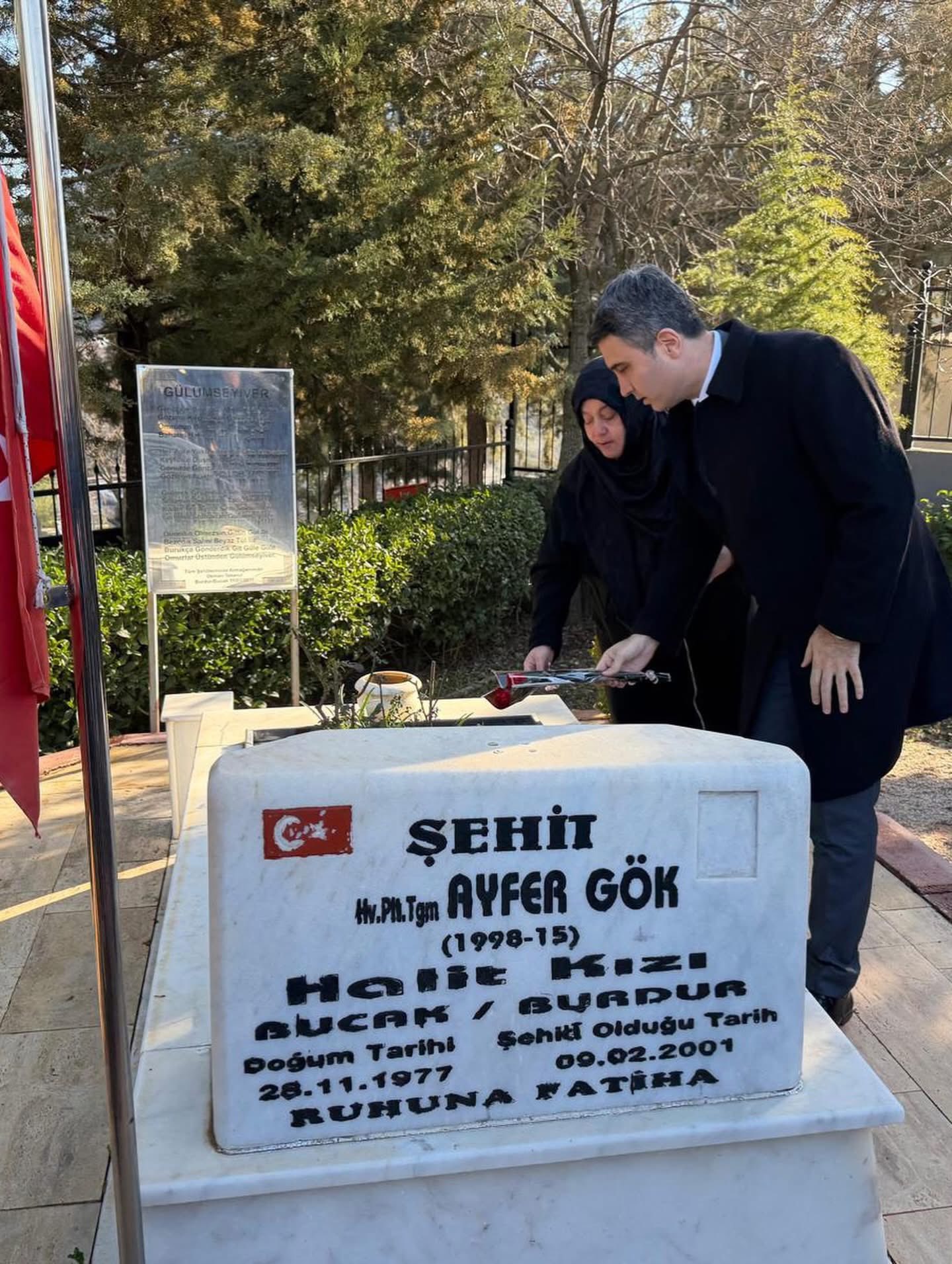 Kaymakam Can Kazım Kuruca beraberindekiler, Şehit Pilot Teğmen Ayfer Gök ve şehitlikte bulunan tüm şehitlerin mezarlarına çiçek bıraktıktan sonra, tüm şehit kabirlerini ziyaret edip