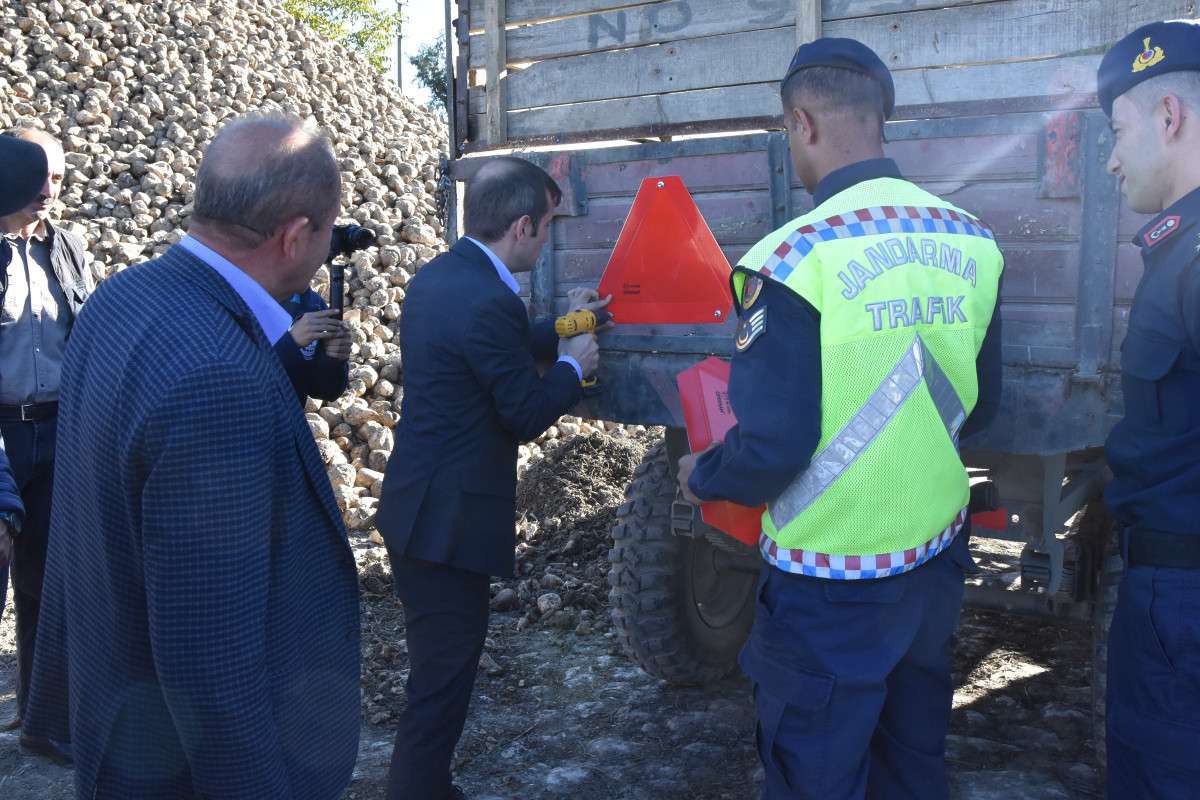 15 Jandarma personelin katılımıyla gerçekleşen faaliyette, trafik kazalarını ve trafik kazalarına bağlı ölüm ve yaralanmaları azaltmak amacı ile traktör sürücülerine; koruyucu çerçeve, tepe lambası, reflektör bulunmasının önemi, römorkların kullanımı, karayolunda emniyetli araç kullanma, genel trafik kuralları konularında eğitim verilerek, sürücülere reflektör ve broşür dağıtımı yapılmıştır.