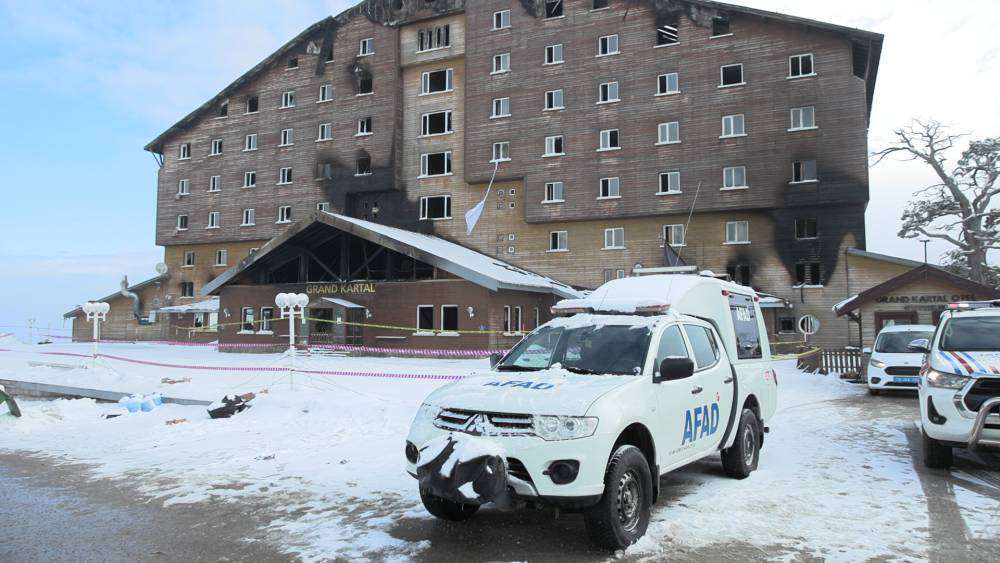 Kent merkezine 38 kilometre mesafedeki 2 bin 200 rakımlı Köroğlu Dağları’nın zirvesindeki 5 otelden 1’i olan Grand Kartal Otel’de 21 Ocak gecesi yangın çıktı. Otelin ana giriş kapısına göre eksi 1, arka giriş kapısına göre ise 4’üncü katında bulunan restoran kısmında çıkan yangında alevler kısa sürede büyüdü. Saat 03.21’de, 112 Acil Çağrı Merkezi’ne yapılan ihbar üzerine bölgeye ekipler sevk edildi. Yangında, 78 kişi hayatını kaybederken, alevler 11 saatlik çalışmayla söndürüldü.