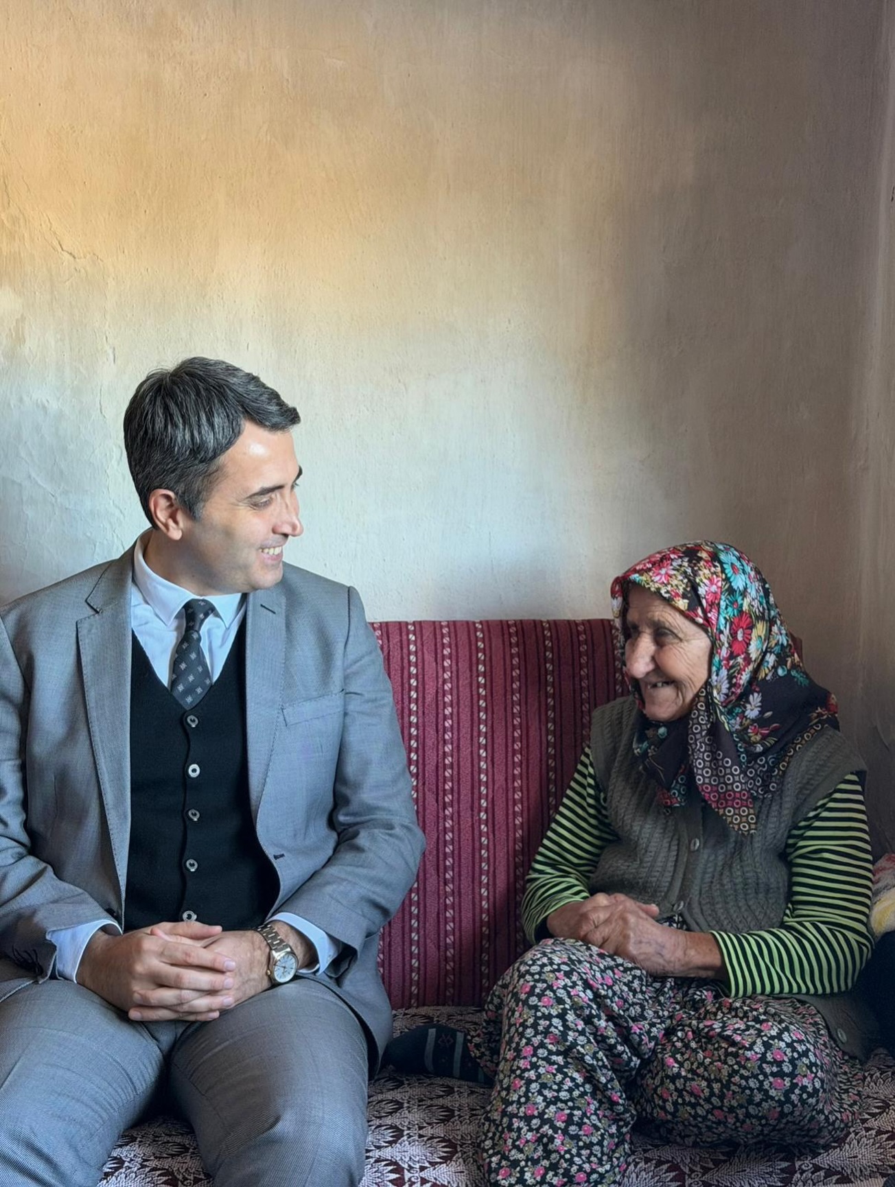 Hayatında belki de ilk kez bir kaymakamı evinde ağırlayan Havva Ayaz’ın mutluluğu, yüzüne yansıyan tebessüm ve gözlerindeki pırıltıyla dikkat çekti. Yaşı itibarıyla kaymakamlık makamının ne anlama geldiğini tam olarak kavrayamasa da, gösterilen ilgi, şefkat ve samimiyetin Havva Ayaz nineyi duygulandırdığı gözlendi.