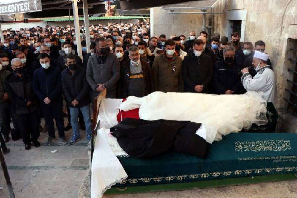 Kazada ölen 6 aylık evli çift, gelin ve damatlıkla uğurlandı