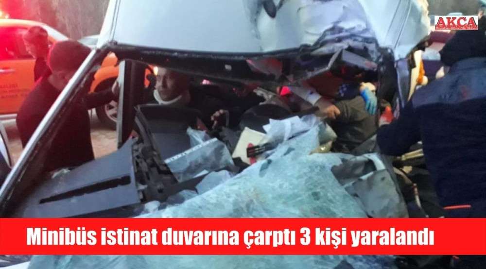 Minibüs istinat duvarına çarptı 3 kişi yaralandı