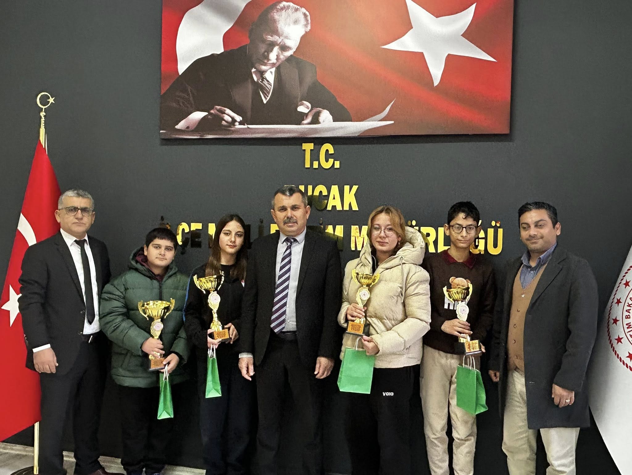 Elde edilen başarıların ardından okul yöneticileri ve dereceye giren öğrenciler, İlçe Millî Eğitim Müdürü Bekir Canavar’ı ziyaret etti. Ziyarette İlçe Millî Eğitim Müdürü Bekir Canavar, öğrencileri tebrik ederek derece alan sporcuları ödüllendirdi ve başarılarının devamını diledi.