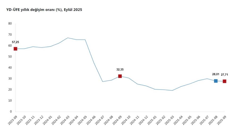 ANKARA, (DHA)- TÜRKİYE İstatistik Kurumu (TÜİK), yurt dışı üretici fiyatlarının eylül ayında yıllık yüzde 27,71, aylık yüzde 2,01 arttığını açıkladı.