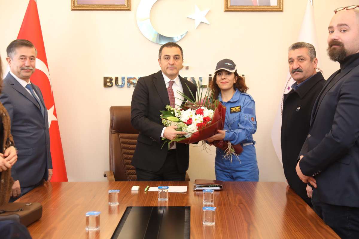 Burdur Valisi Türker Öksüz, Türk Hava Kurumu'nun kuruluşunun 99. yıl dönümü dolayısıyla ziyarette bulunan THK Burdur Şube Başkanı Alaettin Kalkan, yönetim kurulu üyeleri ve genç kanatlar topluluğunu kabul etti.