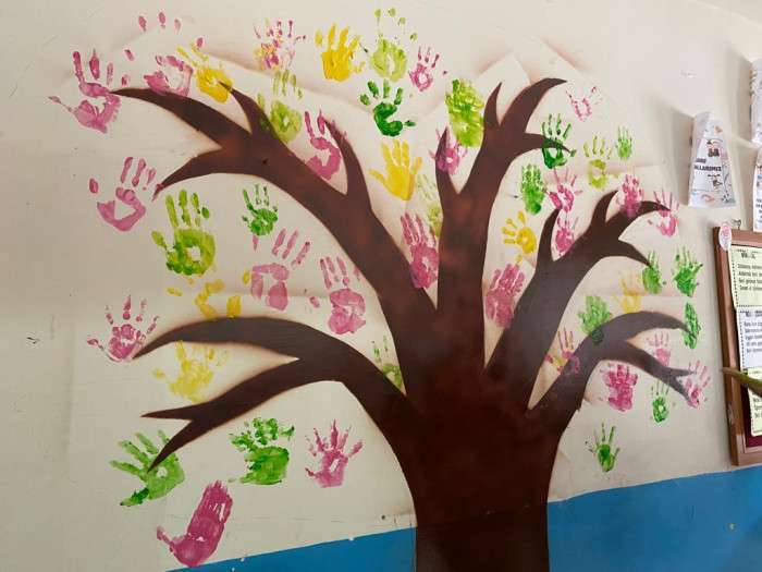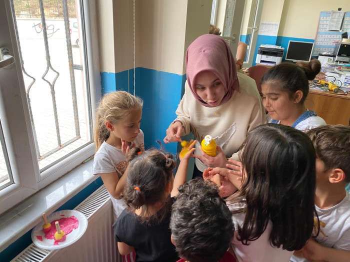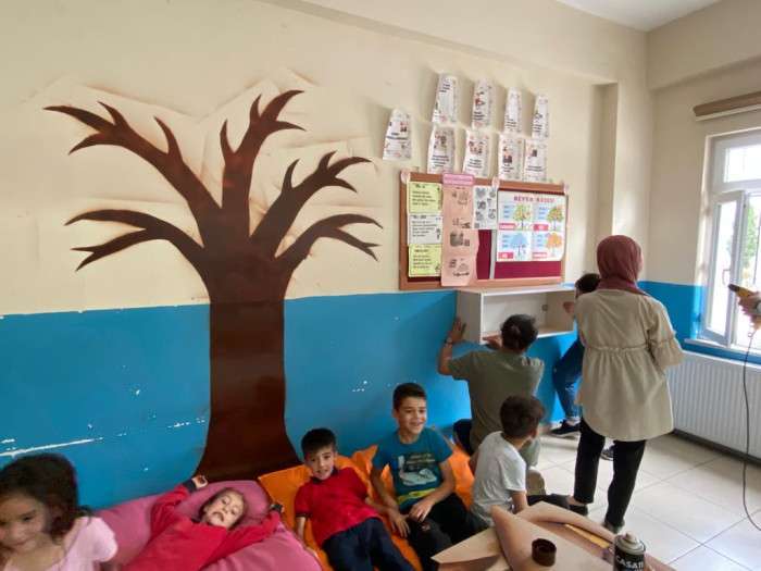 BURDUR’ un Bucak ilçesinde bir grup üniversite öğrencisi, okulun sınıf duvarlarına resim yapıp, el baskısı ile duvar boyadılar.