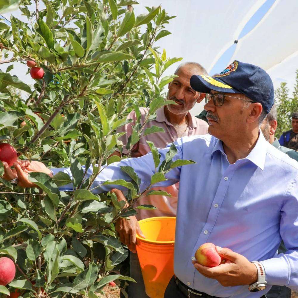 Vali Çelik, elma hasadına katıldı