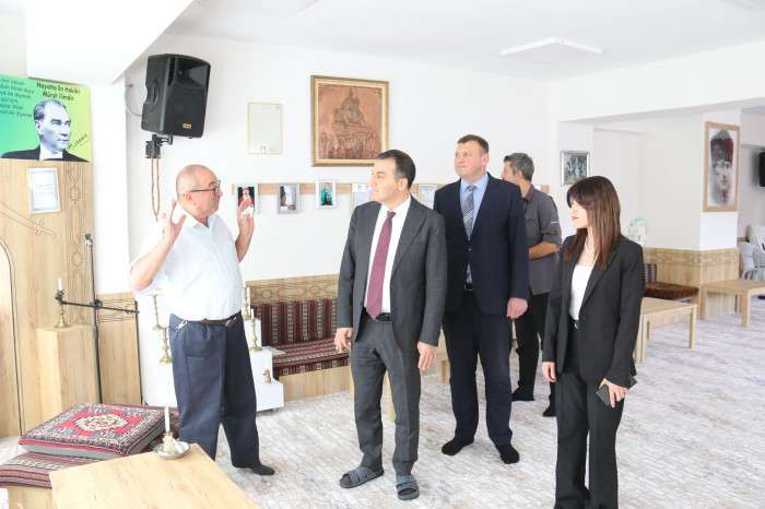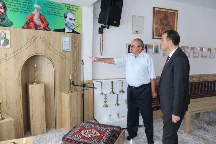 Kaymakamlıķ ziyaretinin ardından Çavdır Menevşelik Mahallesinde bulunan İmam Hüseyin Cemevi’ne ziyaret eden Vali Öksüz, dernek yönetimi ve Cemevi yetkilileri ile biraraya geldi.