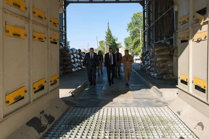 TMO ziyareti sırasında kapalı depo, hububat silosu ve ürün satış noktası bölümlerini inceleyen Vali Öksüz, Şube Müdürü Ramazan Damar’dan hububat, bakliyat, haşhaş, mısır alım ve satımları ile ilgili kurumda yürütülen çalışmalar hakkında brifing aldı.