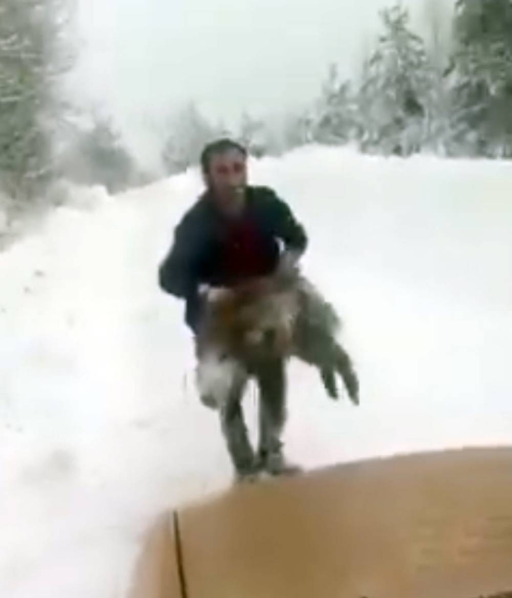 Yolda önüne çıkan yaban domuzunu elleriyle yakalayan sürücü: Kimse denemesin